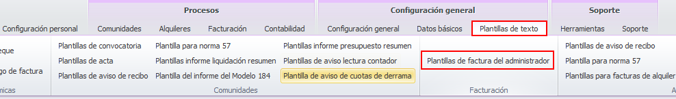 Vaya al menú Plantillas de texto y escoja Plantillas de factura del administrador.