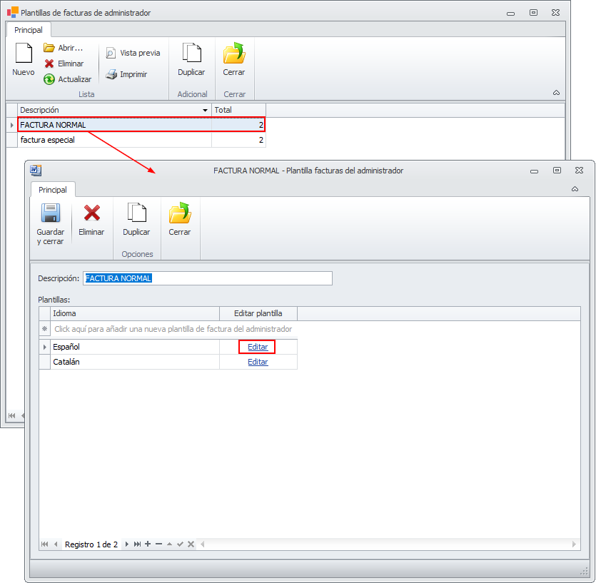 Abra las plantillas que use habitualmente y en la que desee añadir estos campos. Recuerde que debe modificar la plantilla de cada uno de los idiomas en los que las emita.