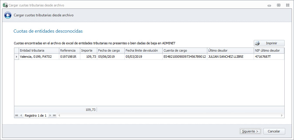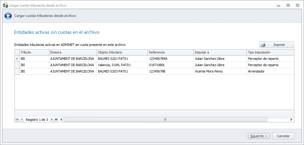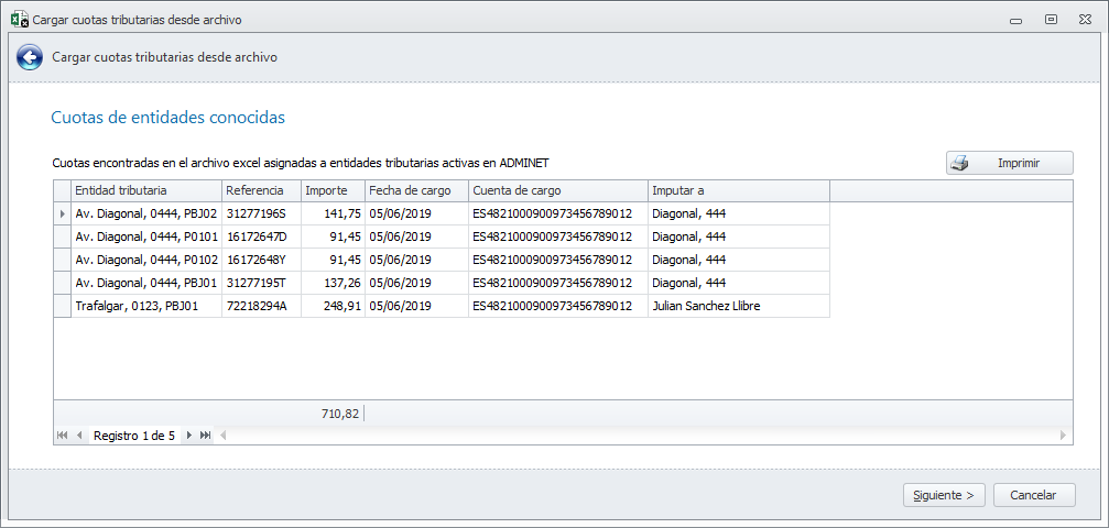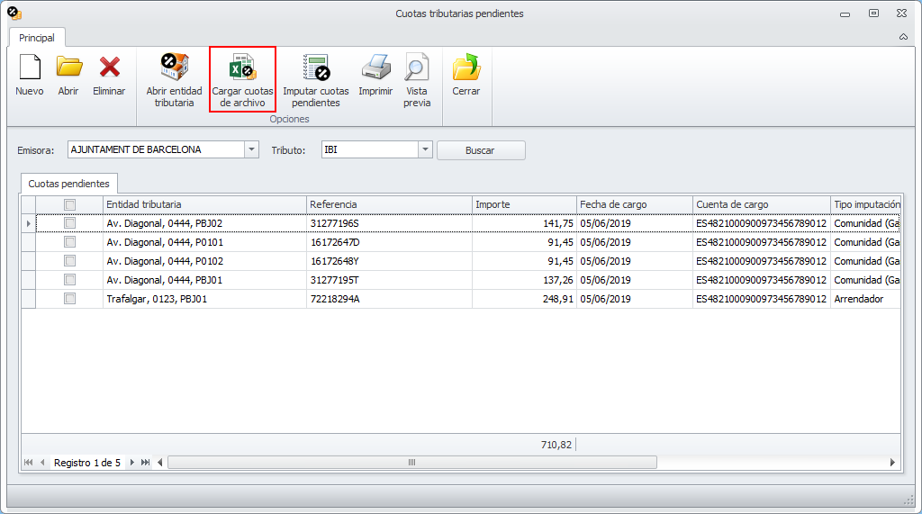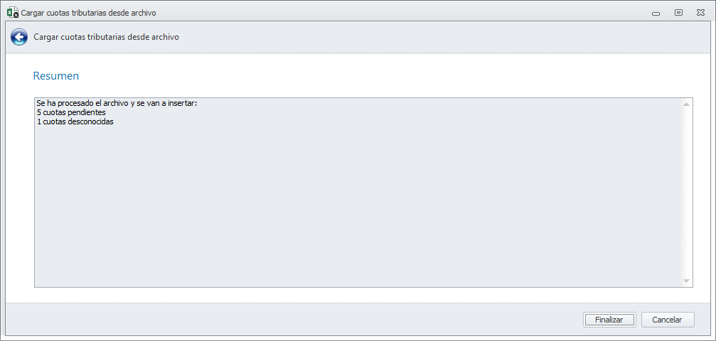 Tras procesar el archivo, las cuotas tributarias quedan guardadas del siguiente modo: