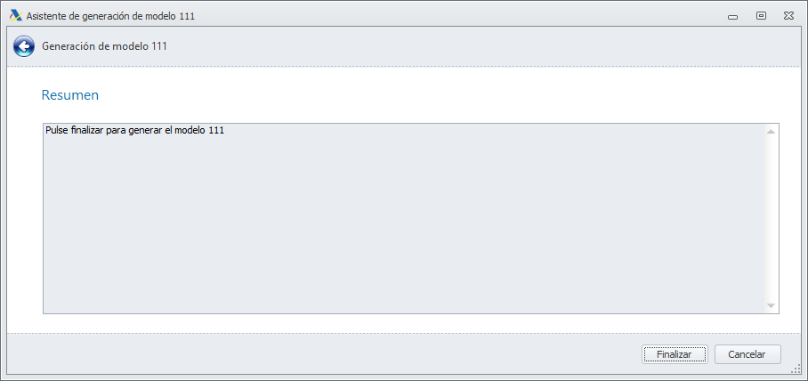 Con la siguiente ventana se confirma la finalización del proceso de generación del modelo 111.