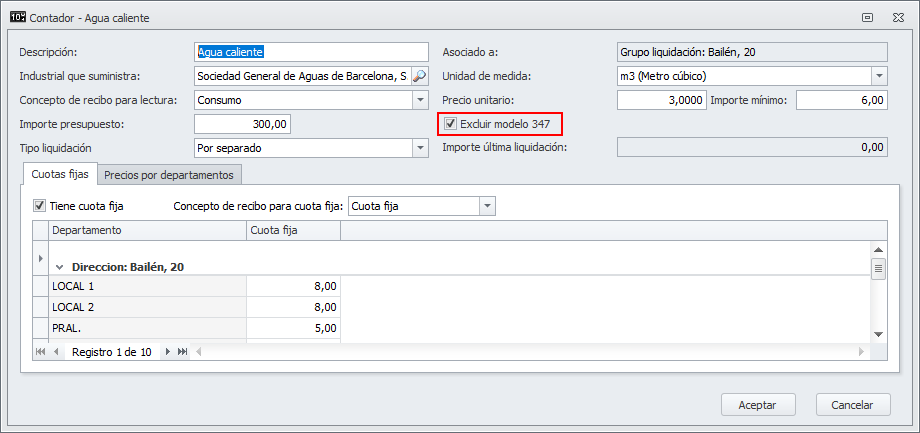 Si está usando contadores de consumo en alguna comunidad, abra la ficha de cada contador e indique si debe estar incluido en el modelo 347 según la ley vigente.