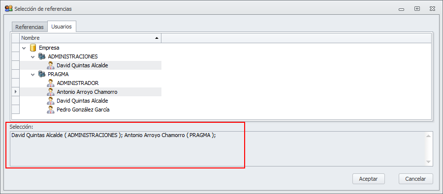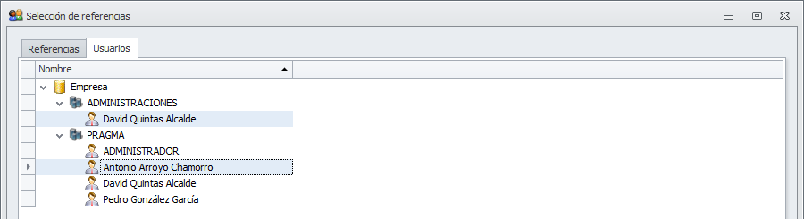 Selección de usuarios