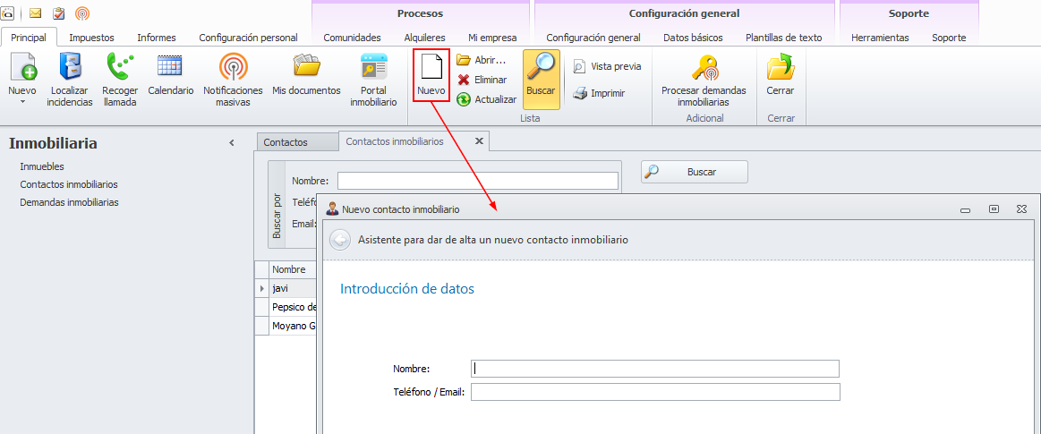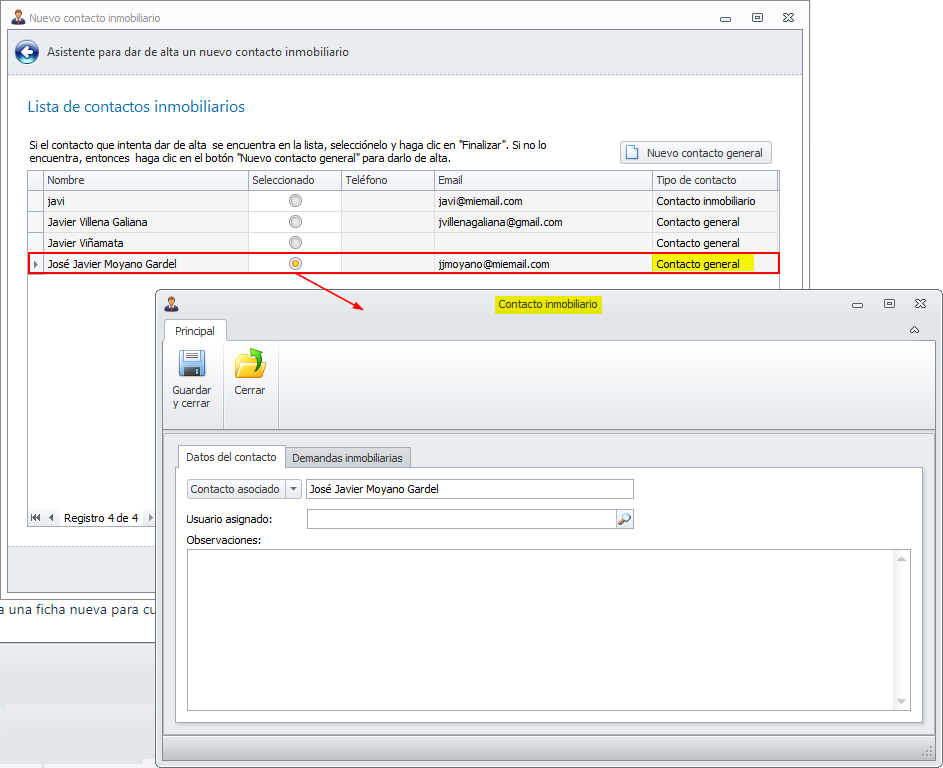 Haga clic aquí para ver los datos de una ficha de contacto inmobiliario.