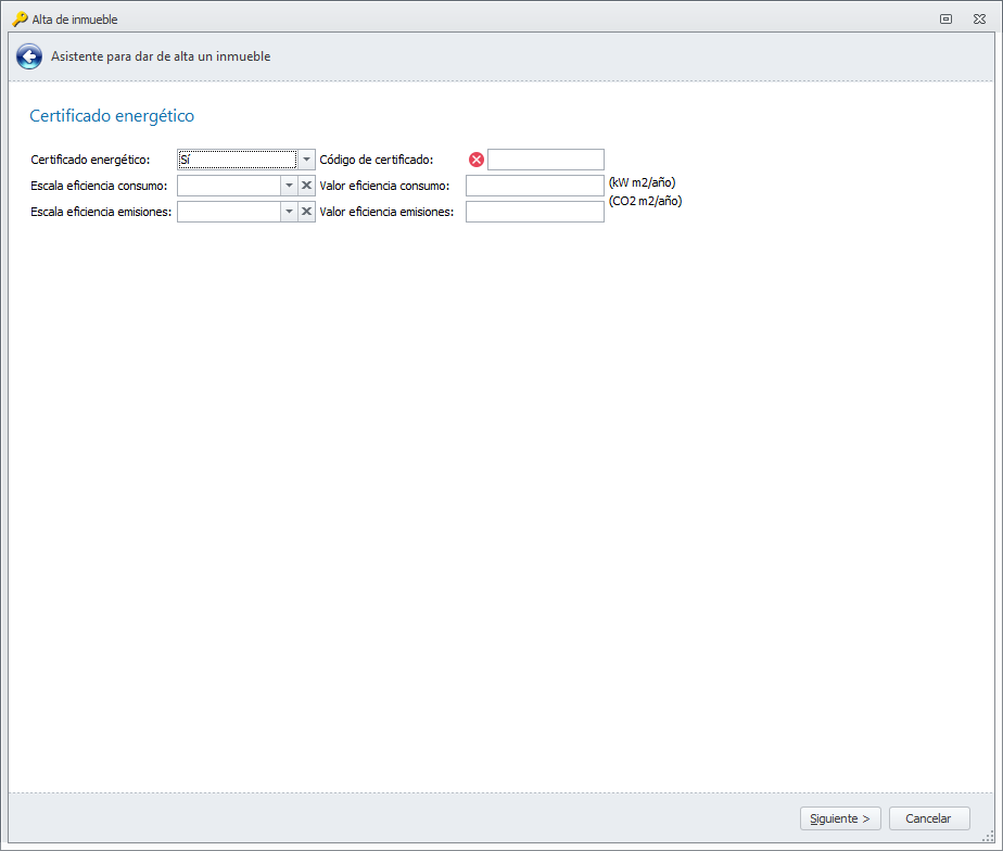 Certificado energético. Muestra los datos existentes en la ficha del departamento. Puede cambiarlos, si es preciso.