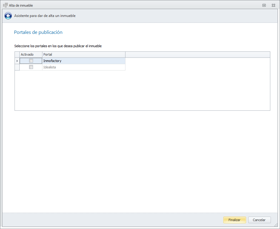 La última ventana le permite indicar en qué portales va a publicar este inmueble.