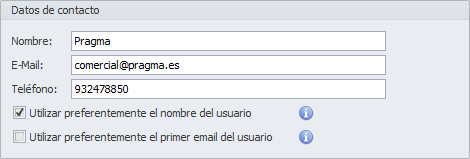 En la pestaña Datos generales de la configuración de los portales Inmofactory e Idealista, puede ver un grupo de datos denominado Datos de contacto.
