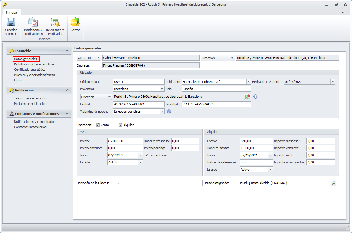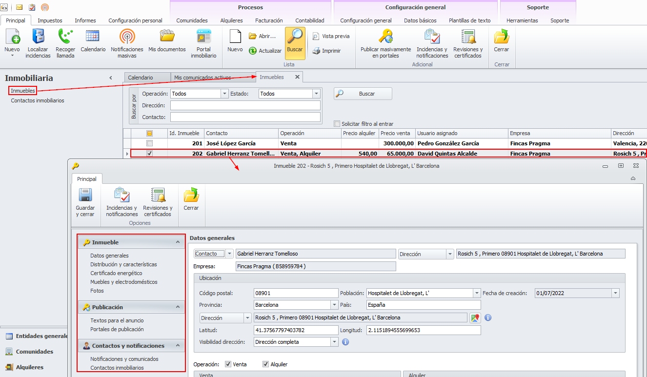 Datos de la ficha del inmueble