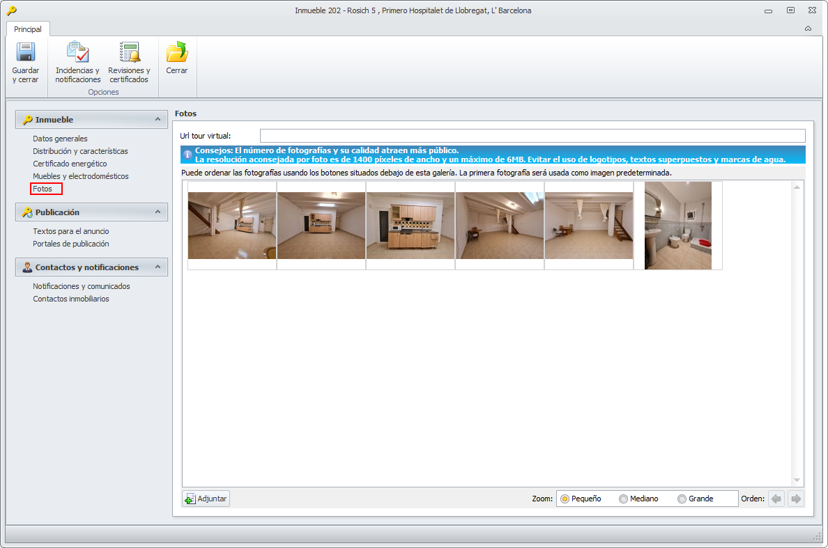 La fotografía que se muestra en primer lugar es la que se usa como predeterminada en los portales.