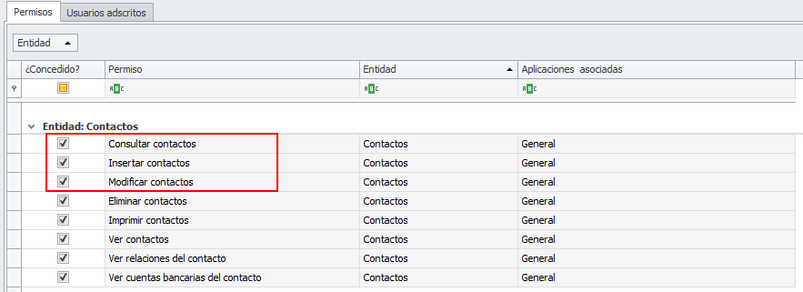 Consultar, insertar y modificar contactos.