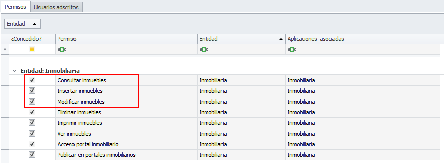 Permisos para dar de alta inmuebles