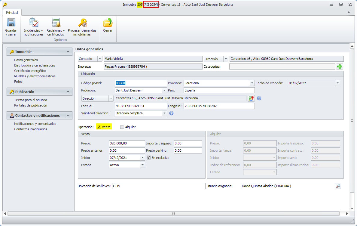 Referencia interna del inmueble