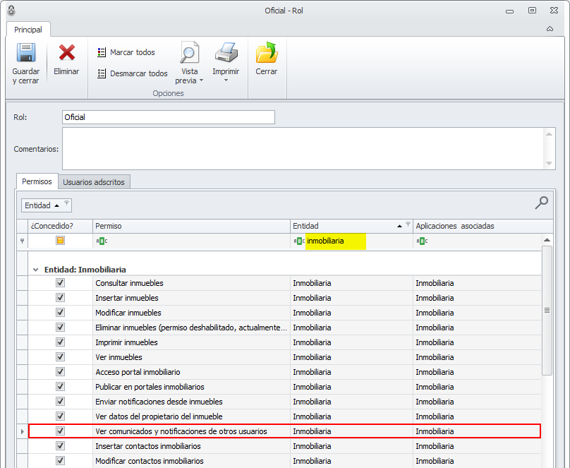 Desactive este permiso cuando desee que los usuarios adscritos a ese rol sólo puedan ver los comunicados y notificaciones que han enviado o recibido ellos mismos y que no puedan acceder a los de otros usuarios.