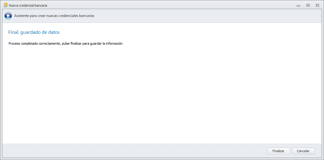 Asistente de nueva credencial bancaria
