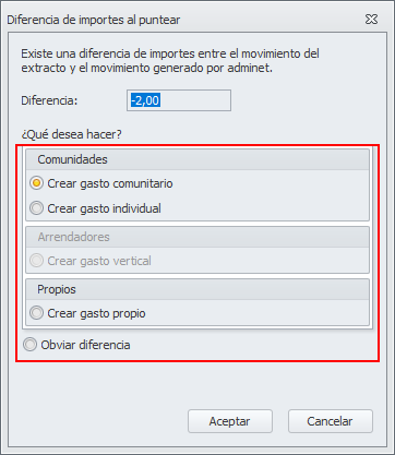 La opción Obviar diferencia, puntea los movimientos implicados sin tener en cuenta la diferencia.