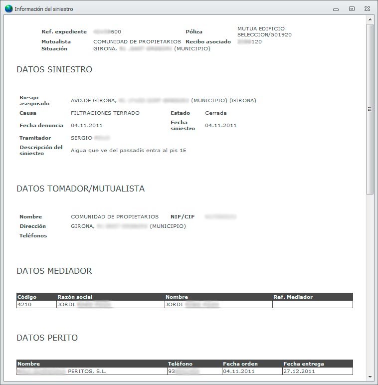 Se puede consultar desde una tarea, el estado actual del siniestro dado de alta en Mutua de propietarios.