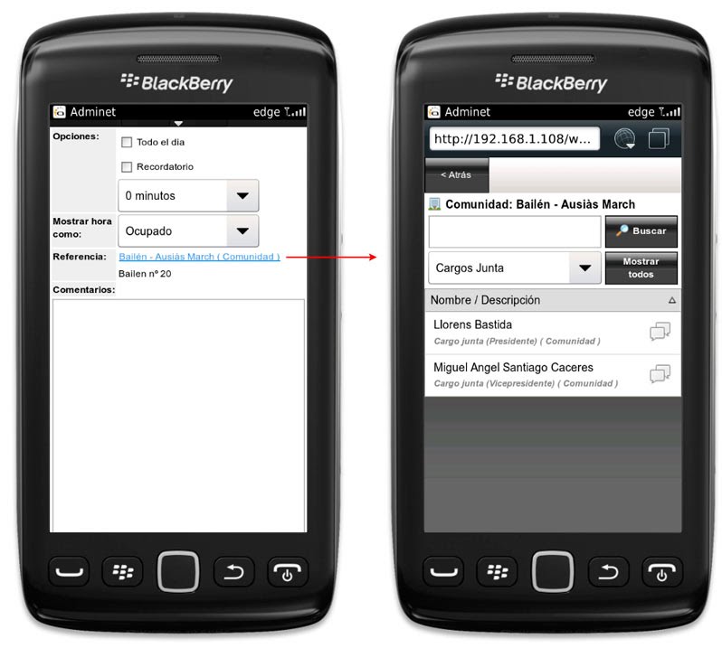 Se ha añadido el control de referencia en la ficha de la cita para poder acceder a las diferentes formas de contactar o contactos de la referencia asociada. Por ejemplo, si hemos introducido como referencia una comunidad, tendremos acceso a todos los contactos de la comunidad.