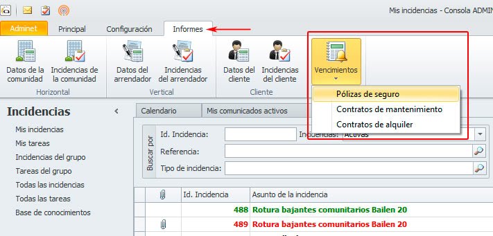 Se ha añadido una nueva sección de informes donde podemos listar las pólizas de seguro, contratos de mantenimiento o contratos de alquiler que vencen en un intervalo de fechas.