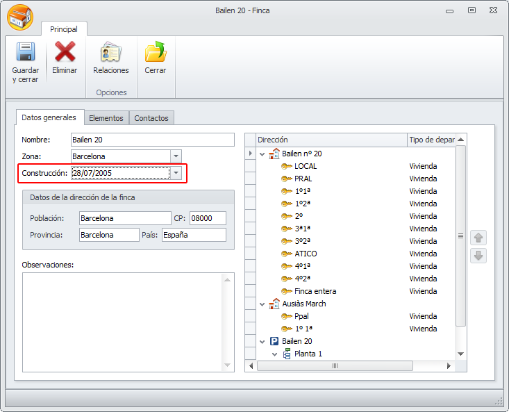 Se ha añadido un nuevo campo en la ficha de la finca: ‘Fecha construcción’. Permite establecer la fecha de construcción de la finca.