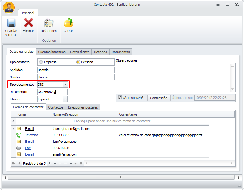 Se ha añadido un nuevo campo en la ficha del contacto e industrial que permite definir el tipo de documento identificativo: NIF, NIE, CIF…