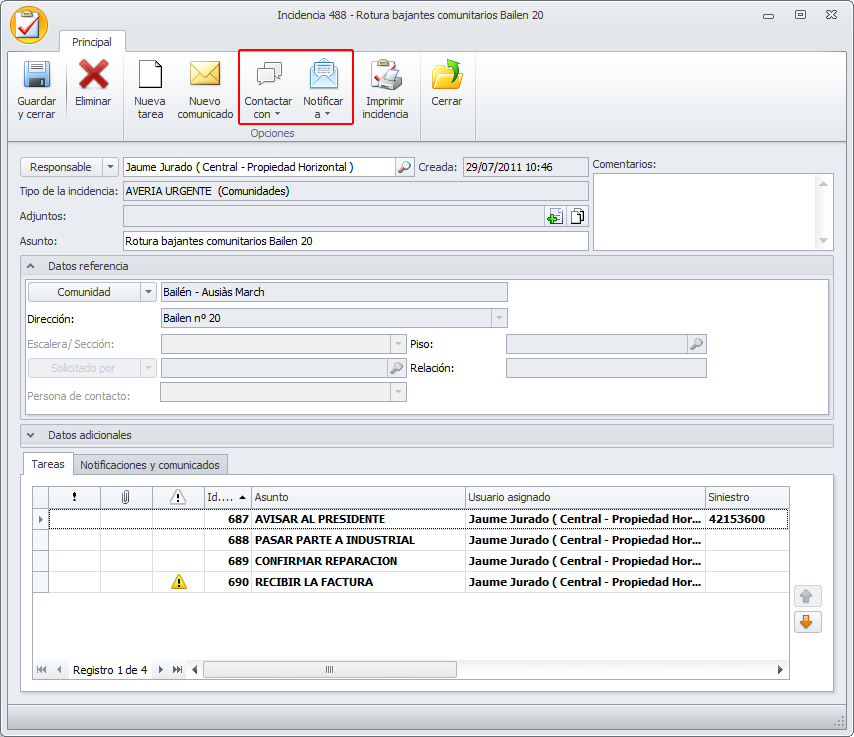 Se ha revisado las formas de ‘Contactar’ y ‘Notificar’ desde la ficha de la incidencia como de la tarea. En algunos casos no estaba funcionando de forma correcta.