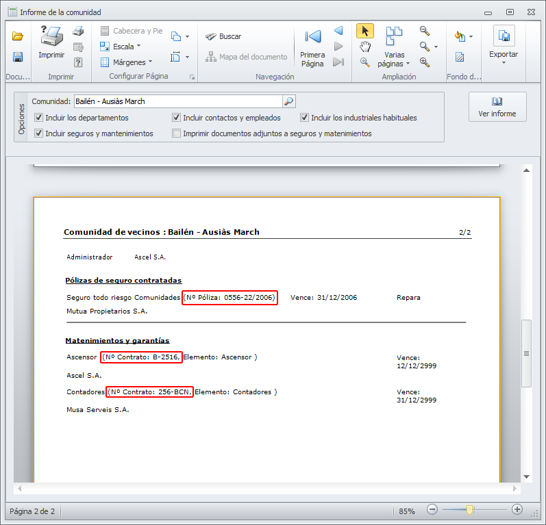 Incluir en el informe de la comunidad y arrendador, el número de contrato de mantenimiento.