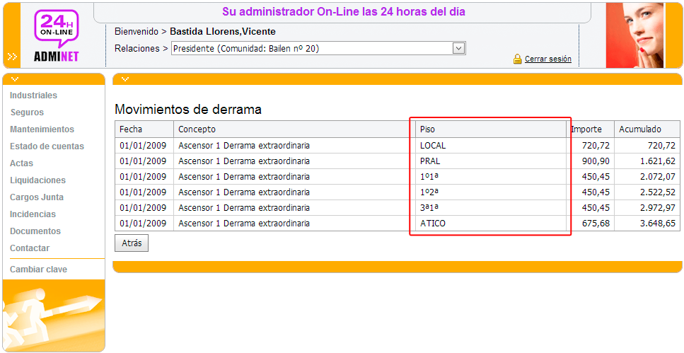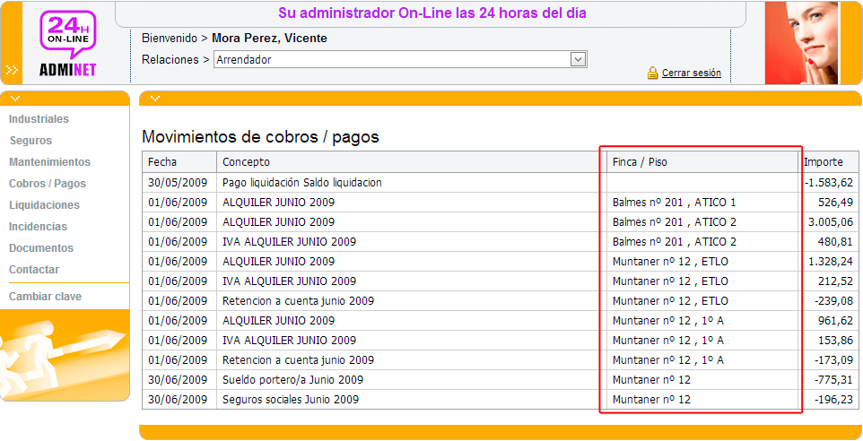 En las listas de cobros pagos de horizontal y vertical se ha añadido la columna Piso y Finca/Piso respectivamente. De esta manera podemos saber a que piso corresponde el cobro pago. En el supuesto que el cobro pago esté asociado a la comunidad o el arrendador, este campo estará vacío.