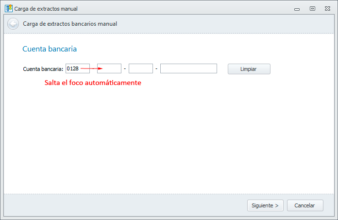 Al introducir un número de cuenta, el foco salta automáticamente a medida que vamos introduciendo los datos.