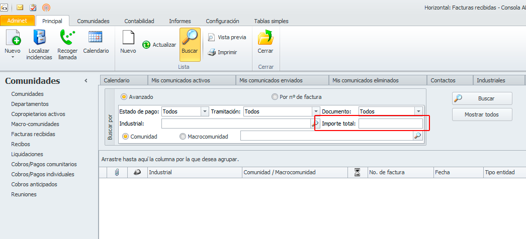 En la lista de facturas, se ha añadido un nuevo campo de filtrado por importe. Esto permite poder buscar facturas por un importe en concreto.