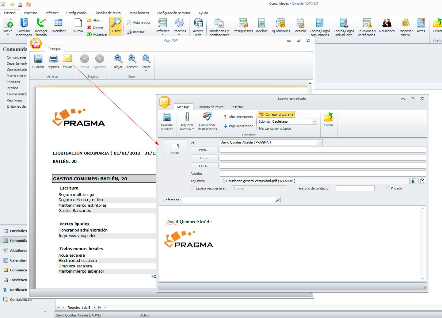En los informes generados por Adminet existe la posibilidad de enviarlos por email, ahora, este envío, el sistema lo realiza vía comunicados del propio Adminet. No utiliza mensajería externa. El sistema crea un nuevo comunicado con el informe adjunto en formato seleccionado.