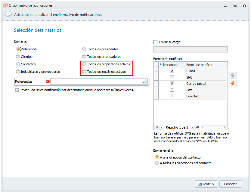 Cuando desde el asistente de envío masivo de notificaciones seleccionamos la opción “Todos los propietarios activos” o “Todos los inquilinos activos” no se envía la notificación a los propietarios e inquilinos de comunidades dadas de baja.
