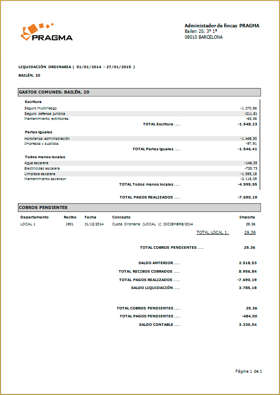 Se añade una nueva forma de liquidación ordinaria: “Sólo Gastos”. Esta forma de liquidación funciona de forma tal que en cada trimestre se realiza la liquidación ordinaria de la comunidad y el resultado de los gastos de cada piso en este periodo, constituirá la cuota que se emitirá en el siguiente recibo.
