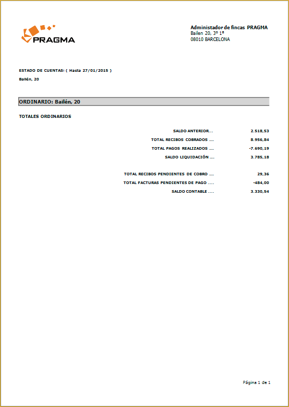 Nuevo informe “Estado de cuentas detallado” que permite ver de forma rápida el estado de cuentas de la comunidad. Este informe sustituye al informe de simulación de liquidación. Está accesible desde la lista de comunidades o macro-comunidades, haciendo click con el botón derecho, en el apartado informes seleccionamos “Estado de cuentas detallado”.