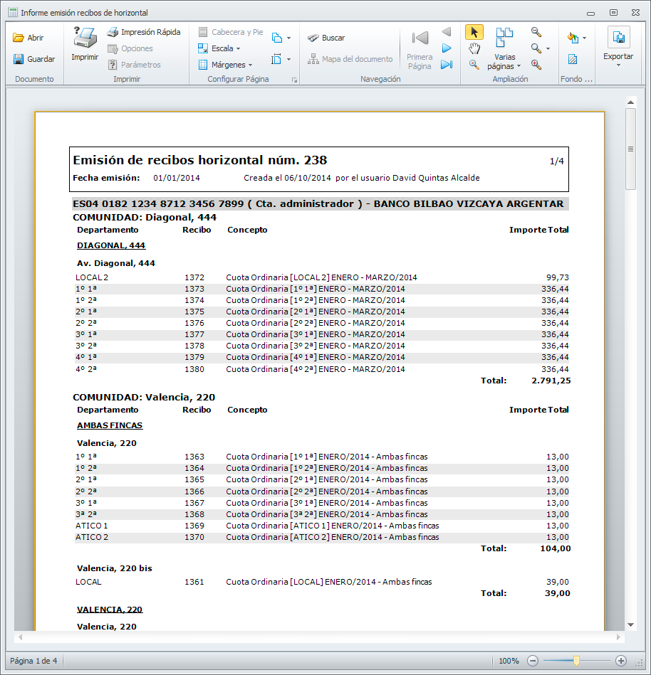 Nuevo informe de emisión de recibos a comunidades que le permitirá listar todos los recibos incluidos en una emisión, agrupados por la forma de cobro.