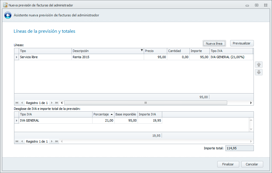 Con la configuración ya realizada se podrá empezar a introducir las previsiones en el apartado Facturación->Previsiones a clientes.