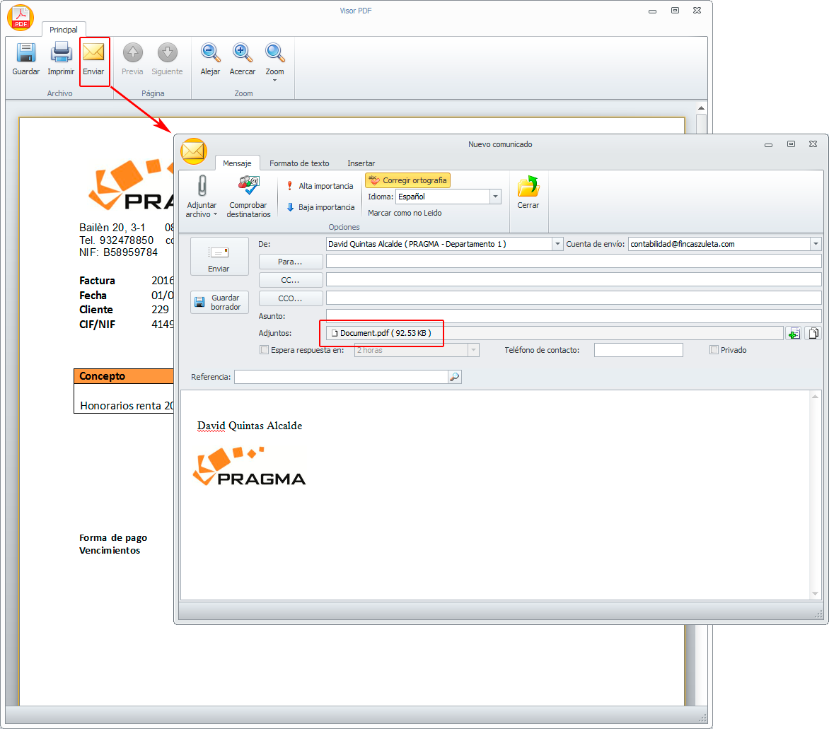 Se permite enviar una factura emitida directamente por comunicado. En este caso la factura se adjunta a un nuevo comunicado.