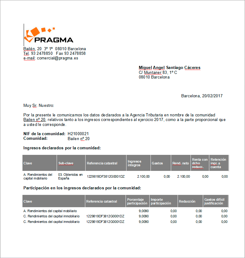 Si quiere notificar a los copropietarios la información de las declaraciones presentadas, deberá adaptar la plantilla de notificación ubicada en 'Datos básicos'->'Plantillas del informe del modelo 184'.