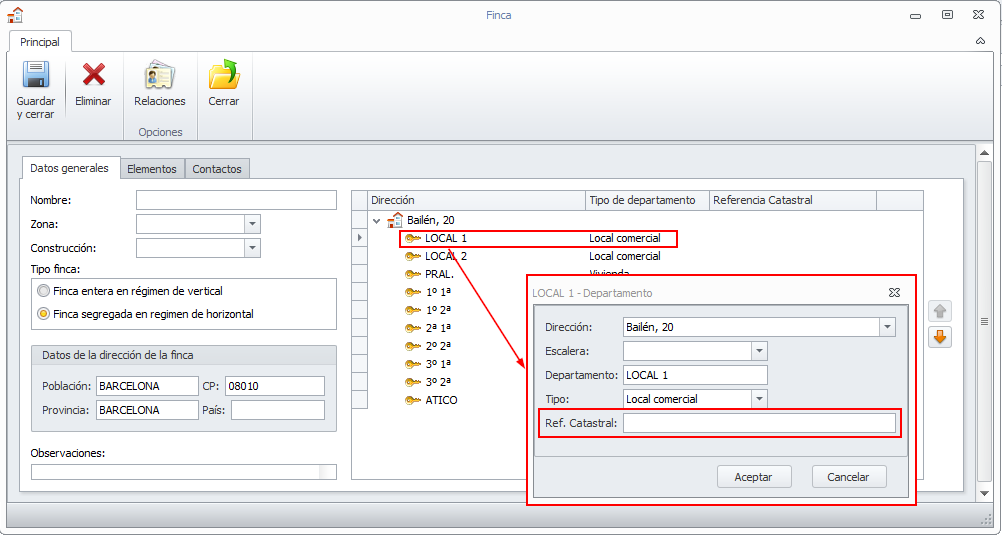 Ficha del departamento. Se añade referencia catastral