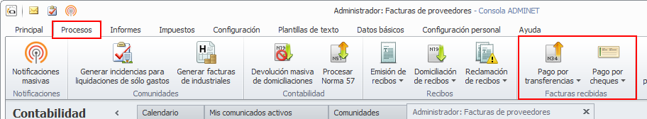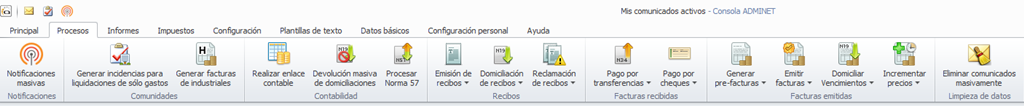 La cinta de botones del menú Procesos ha sido reordenada, quedando ahora del siguiente modo.