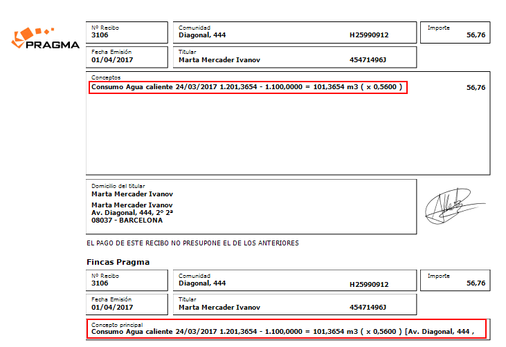 Recibos de consumo de contadores