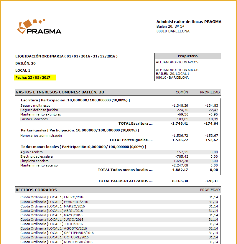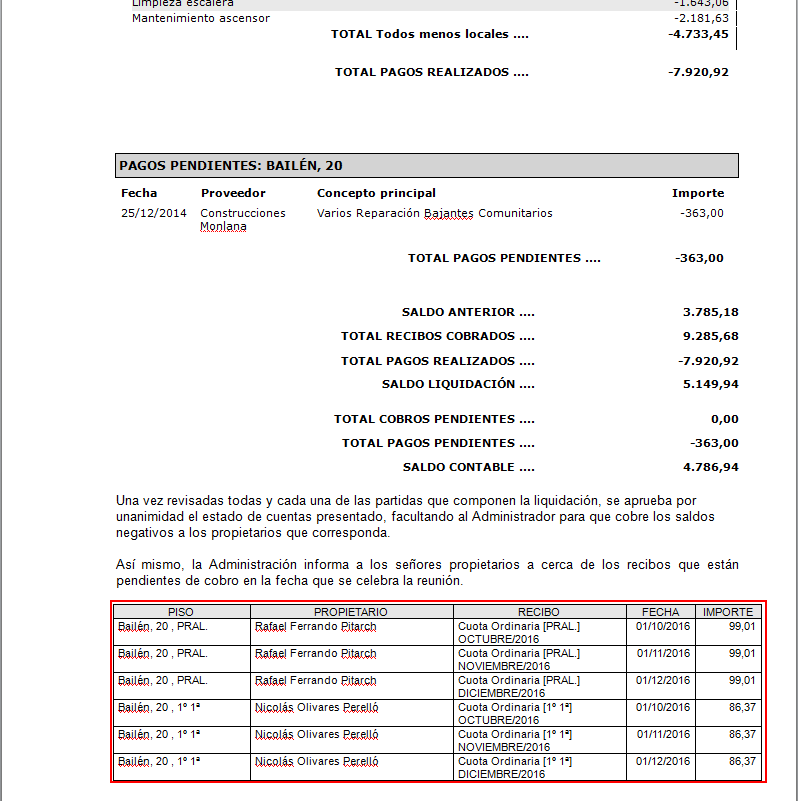 De este modo se resuelve el caso del propietario que paga por avanzado el importe de una serie de recibos concretos.