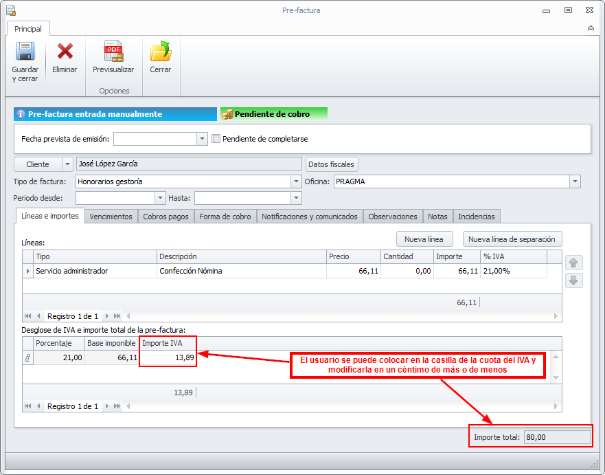 Permitir editar cuotas de IVA e IRPF en prefacturas a clientes y comunidades