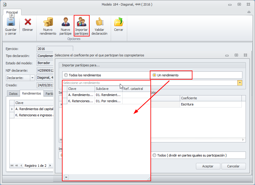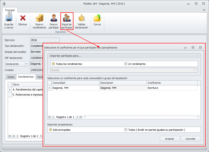 Modelo 184. Mejoras en la importación de partícipes