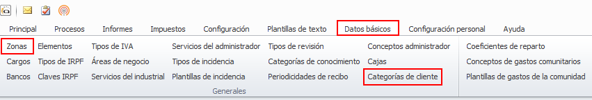 En el apartado Datos básicos encontrará los accesos a las listas para personalizar las zonas y las categorías que después asignará a los clientes.