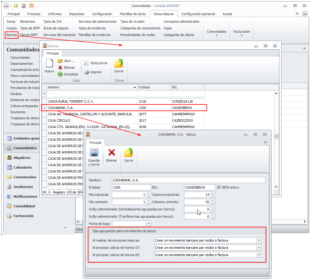 Se ha modificado la tabla de bancos para permitir configurar la forma en la que contabiliza determinadas operaciones bancarias.