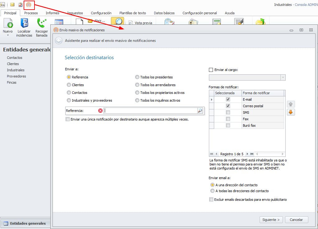 El procedimiento de Envío de notificaciones masivas ha sido revisado para que utilice la forma de envío prefijada en la ficha del destinatario.