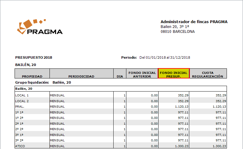 En el caso de que la comunidad liquidase los gastos ordinarios por sólo gastos, se cambia el título dela columna FONDO INICIAL ACTUAL por FONDO INICIAL PRESUP.