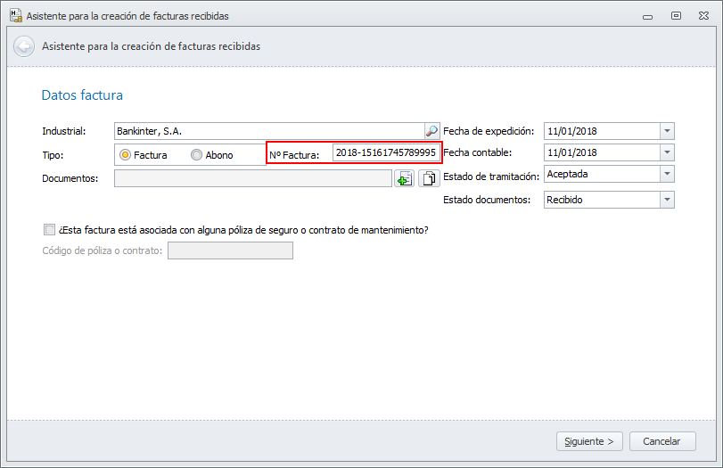 Fecha contable: Es la fecha en la que se registra en contabilidad como recibida, es decir, la fecha de contabilización. También es la fecha a partir de a cuál se incluye esta factura en los impuestos (modelos 111 y 347).
