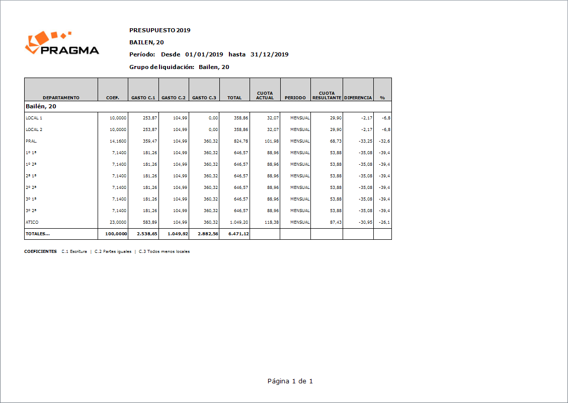 A continuación podemos ver un ejemplo de un presupuesto resumen obtenido con la plantilla Presupuesto ordinario 8 coeficientes.