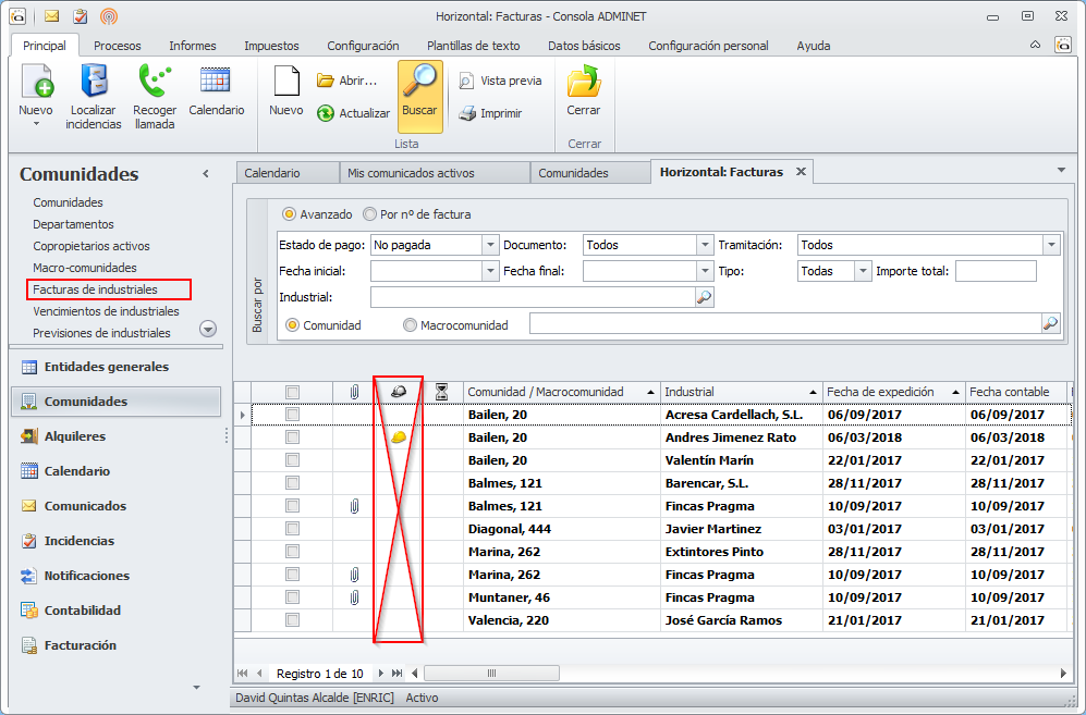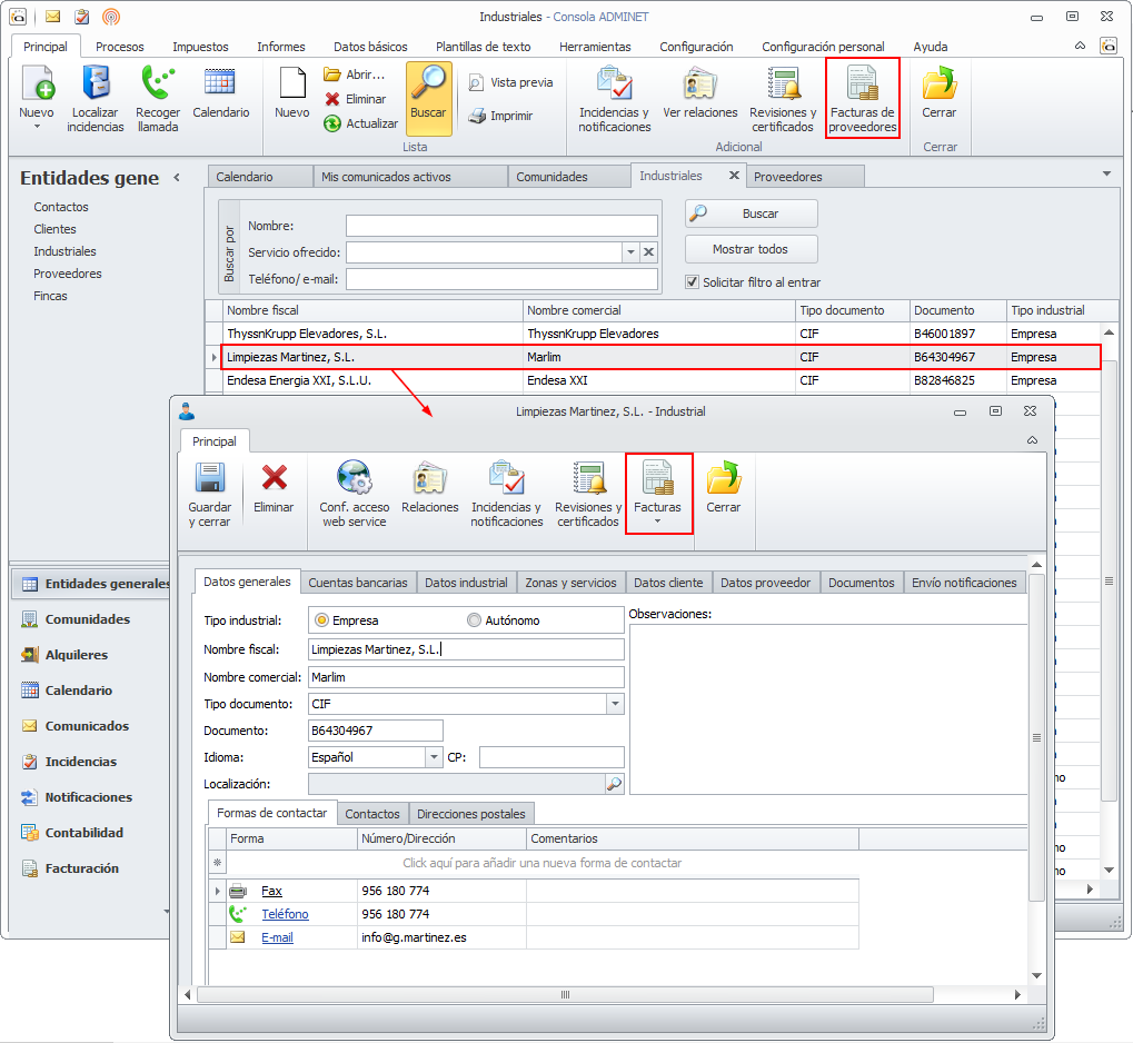 Nuevo botón en ficha de industrial para acceder a sus facturas como proveedor del administrador