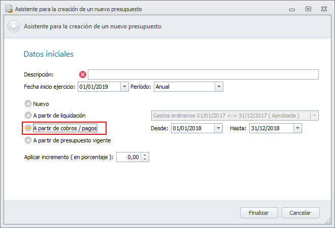 Se ha ajustado el proceso de creación de presupuesto a partir de cobros/pagos, para que no tenga en cuenta los movimientos relacionados con fondo de reserva ni los traspasos de dinero.